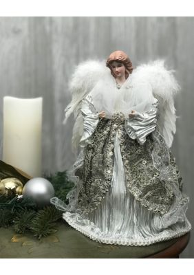This lovely silver angel ornament is made of polyresi.